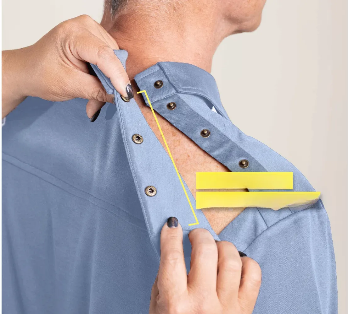 پیراهن‌هایی که جلو باز می‌شوند ، مانند گزینه‌های دکمه‌دار یا زیپ‌دار ، گزینه‌های لباس ایده‌آل برای بهبودی پس از جراحی هستند.
