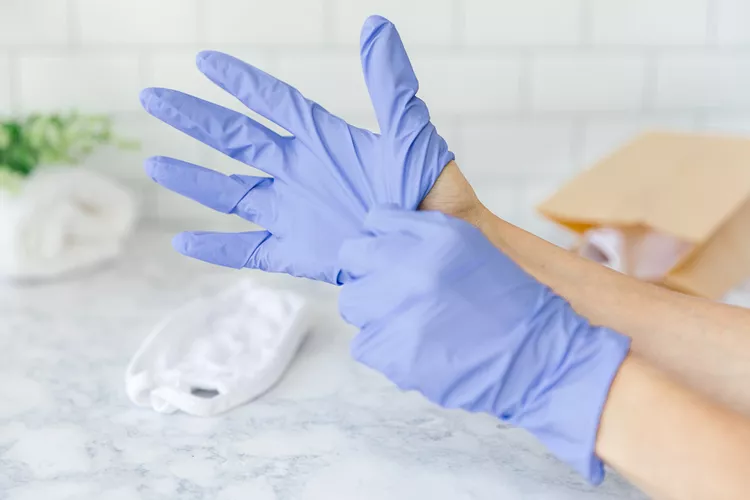 2. استفاده از دستکش : هنگام کار با اسکراب‌های پزشکی، حتماً از دستکش یکبار مصرف استفاده کنید و لباس‌های شسته شده را از صورت خود دور کنید.