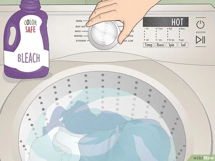 • برای لکه های به خصوص سرسخت، آنها را بعد از این فرآیند با کلر یا سفید کننده اکسیژن با ماشین بشویید .