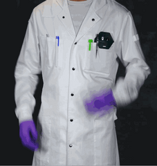 اما شما از گوشی پزشکی و آی پد استفاده نمی کنید. شما از یک پیپت و عینک ایمنی و ده ها ظروف دیگر استفاده می کنید. پس چرا باید کت آزمایشگاهی طراحی شده برای مطب دکتر بپوشید؟